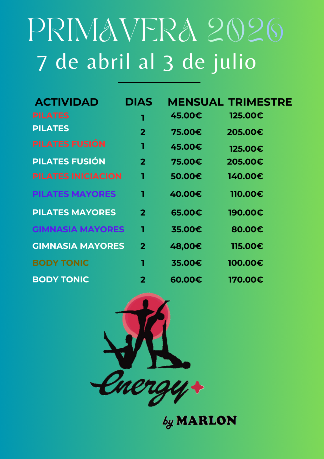 PRECIOS DE PRIMAVERA 2026